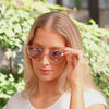 Channel your inner cool cat. Calypso takes inspiration from the iconic cat-eye shape, offering a fresh take on a beloved style for the trendsetter with a touch of eclectic flair.